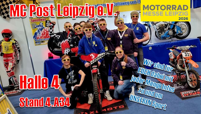 Wir sind für Euch auf der MOTORRAD MESSE LEIPZIG 2026 am Start! Volles Programm beim MCP mit jeder Menge Infos zu und um unseren Sport.